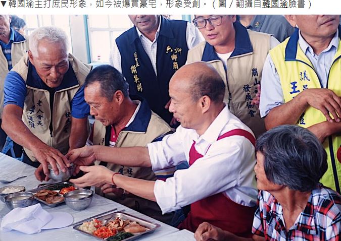 常主打庶民形象的韓國瑜,卻被週刊爆出,他在2011年失業時,還能出手買位於南港高達近7,200萬元的豪宅,報導更直指韓國瑜妻子李佳芬當時還組成「貴婦購屋團」下訂,引發外界質疑財產來源,韓辦還原當年情況說明,原韓國瑜夫婦有意到台北發展事業,先在內湖貸款購屋,後因擔心家中空間不足,需要大一點的生活空間,因此處分內湖房產之後,改到南港購買無雙社區住宅一戶,且因為是預售屋,韓國瑜只需繳納頭期款與部分利息金額,卻高估了財務負擔的壓力,最後在交屋之前只能賠本售出,減輕財務壓力。