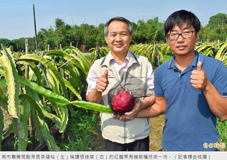 南市農業局副局長李建裕說,張祿棠的紅龍果在批發市場拍賣出高價,高於一般平均價的五倍,證明他用心栽種獲得市場肯定,市府鼓勵和輔導農民種好水果、賣得好價錢、過更好的生活。