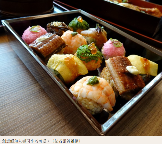 鰻骨薯條配鰻魚可樂將炸得酥脆的鰻骨沾上凱撒沙拉醬、黑松露醬、莎莎醬,再搭配以鰻魚萃取物製作而成的可樂,相當有趣。創意鰻魚丸壽司則以流行於京都的圓球狀「手毬壽司」為概念,將捏成圓球的醋飯,搭配蒲燒鰻、山蕨菜、壽司蝦等配料,模樣小巧可愛,十分吸睛。