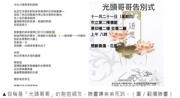 消息傳出後,網路上也廣傳一張疑似家屬曝光的診斷書,內容寫下他因多重器官衰竭、肺栓塞、出血性腦中風等6項疾病,11日晚間送新光醫院急診,後來因病情加重,轉至神經加護病房,但仍不幸於13日凌晨過世。