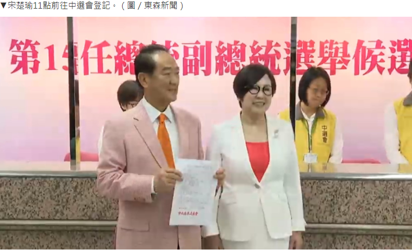 第15任總統、副總統選舉今(18)日開始登記,國民黨總統參選人韓國瑜和親民黨總統參選人宋楚瑜,不約而同挑登記首日赴中選會,而宋楚瑜和副手余湘率先在上午11時抵達,搶頭香登記,韓國瑜和張善政則是在半小時後抵達中選會登記。