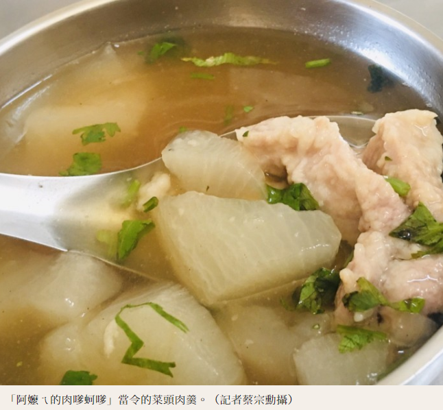 肉羹依季節不同,冬天為在地盛產的菜頭肉羹,第一次上門的顧客聽到菜頭肉羹都會納悶菜頭與肉羹的口感搭嗎,結果一吃成主顧﹔非白蘿蔔季節則是竹筍肉羹,美味一樣令人激賞。
