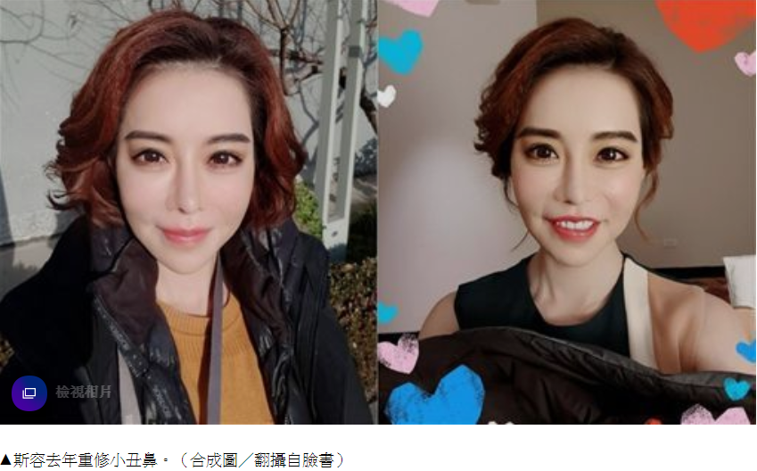 斯容也澄清外界所謂的整形60次,其實真正只有10次動刀,其他都是小微調,不過上次動刀是去年,為了重修10年前在韓國做的小丑鼻,但經歷過各種手術的她坦言,最後後悔的手術是削骨,除了修復期長,連帶也造成很多問題,包括肌肉沾黏、牙齒蛀掉、神經斷掉一堆後遺症,若再次選擇,她說,「打打肉毒就好」。