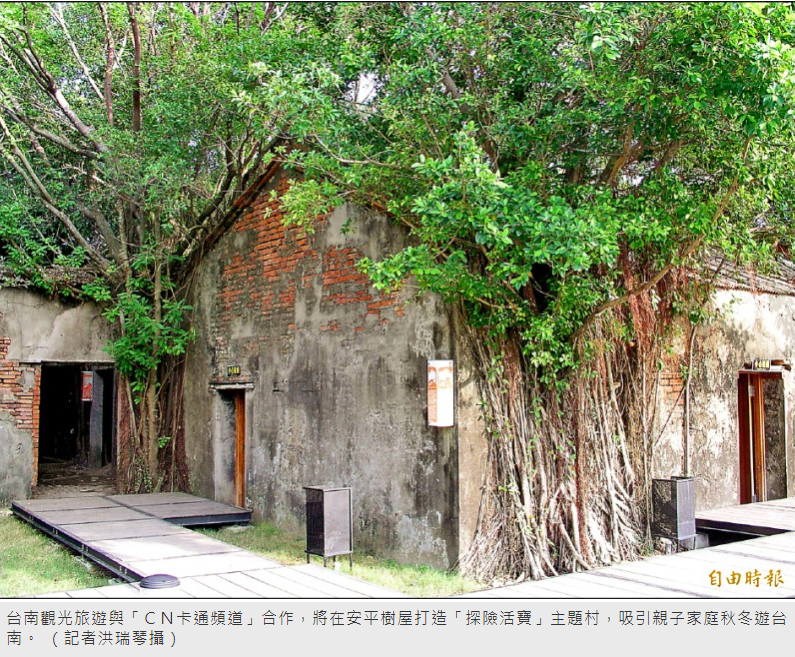 台南旅遊觀光再出新招,十二月七日起在安平樹屋打造「CN卡通頻道—探險活寶」主題村,結合台南旅遊打造主題展,吸引卡通粉絲及親子家庭秋冬遊台南。