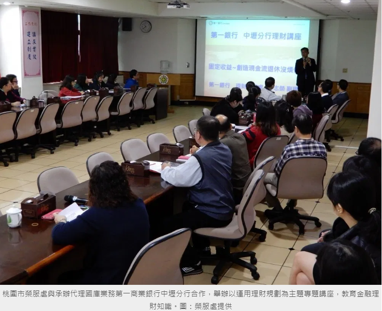 日前桃園市榮服處與承辦代理國庫業務第一商業銀行中壢分行合作,舉辦以運用理財規劃為主題專題講座,教育金融理財知識,增進員工妥善運用資金、降低投資風險,希望藉由正確理財觀念的分享,引導大家學習投資理財的知識,讓資金可以獲得妥善運用。
