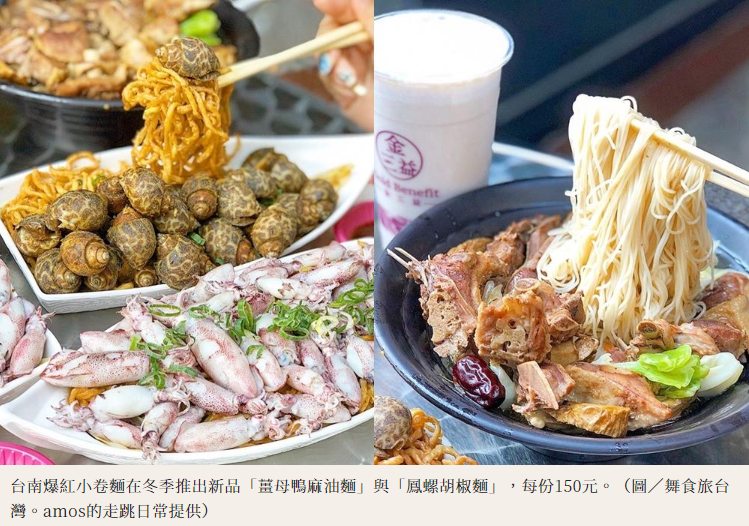 台南在地的茶飲店「金三益」不只賣飲料,前陣子推出小卷沙茶意麵,每碗秤足300公克、近30隻的小卷份量,料比麵還多的海鮮乾意麵又有新突破!讓這間茶飲店一舉爆紅,現在更被網友發現老闆新開賣「鳯螺胡椒意麵」,將海港美食「鳳螺」以經典的熱炒胡椒方式料理,佐上蔥花、鹹香沙茶,視覺光是超過20顆飽滿的鳳螺就令眾人驚呆,口感上更獲得香氣濃郁、大顆鮮甜的好評。