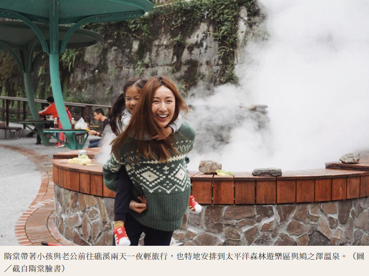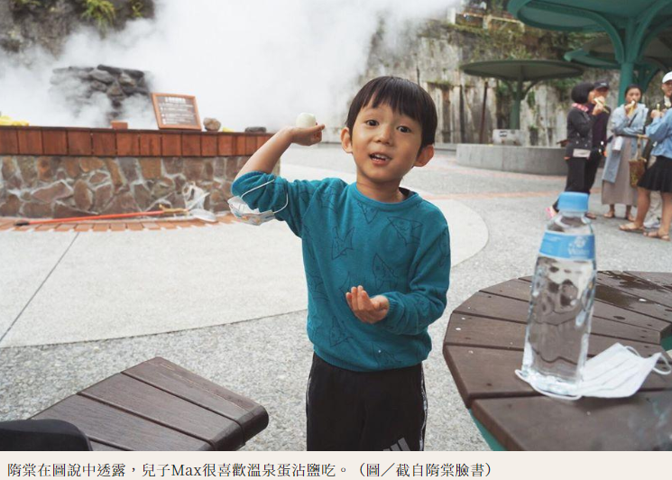 第二天的旅遊行程,隋棠安排到知名景點「太平山森林遊樂區」,大人小孩一起在鳩之澤溫泉煮蛋,並透露兒子Max很喜歡白煮蛋沾鹽吃,而太平山最著名的高山蹦蹦車,卻因爲抵達時間過晚來不及搭乘,不過隋棠也下定決心要再來宜蘭體驗!