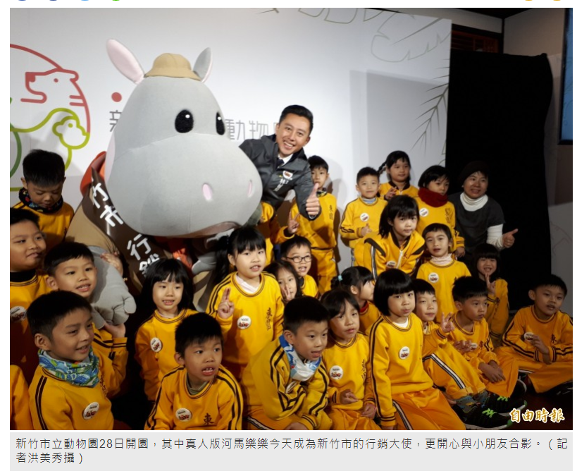 新竹市立動物園28日開幕進入倒數階段,今天動物園專屬的吉祥物河馬樂樂真人版首度亮相,人氣超高的樂樂,一進場就吸引大小朋友歡呼尖叫,林智堅說,市府接下來有許多大型活動,除月底即將開園的市立動物園,還有明年2020年台灣設計展及2021年台灣燈會,希望市府行銷大使「樂樂」河馬,用最活潑、親切方式,帶給孩子們溫暖和歡笑,將新竹的美好分享給更多人,並且像動物園一樣,永遠陪伴著市民。