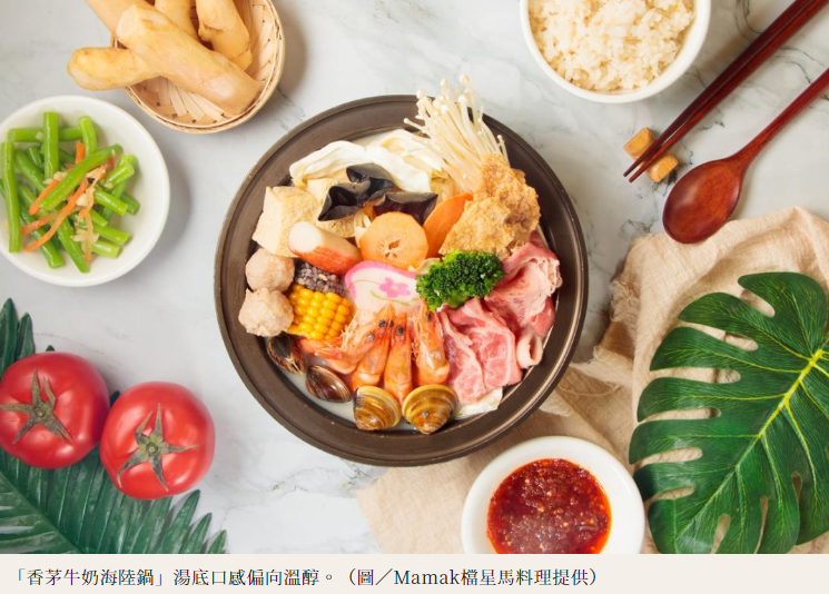 台北東區的排隊名店「Mamak檔星馬料理」,也新推出2款南洋海陸鍋,其中「香茅牛奶海陸鍋」以正宗獨特辛香料熬煮湯頭,展現道地風味,再加入濃醇鮮奶,增添香醇風味,另一款「星馬叻沙海陸鍋」則重現道地咖哩湯底搭配香純椰奶,帶著微微辛香感,2款火鍋皆嚴選新鮮上好食材,白蝦、蛤蜊等海鮮,牛肉或豬肉擇一搭配,以及豐富的青蔬、菇類,吃得暖呼呼口感超滿足。