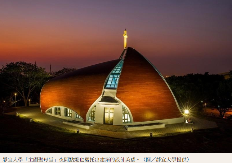 台中除了有東海大學的路思義教堂爆紅,進而提升校園的知名度,2019年最新亮相的靜宜大學「主顧聖母堂」也在12/6舉行落成典禮,其造型結合魚、竹子與竹筍等意象,優美典雅的外觀迅速吸引學生與遊客前來拍照打卡,不只成為台灣海線新地標,也與東海大學PK高人氣。