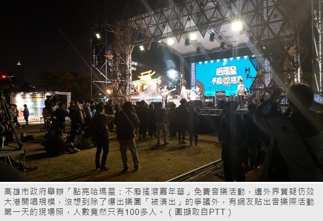 一名網友在PTT發文指出,他13日晚間到「點亮哈瑪星」現場聽到日本團體「SHE IS SUMMER」表演,表示「免費的,不過人真的很少,加一些路過圍在周圍的大概100出頭個人,中間主唱還有要台下觀眾一起唱,結果人太少,完全沒甚(什)麼聲音,現場超尷尬」。