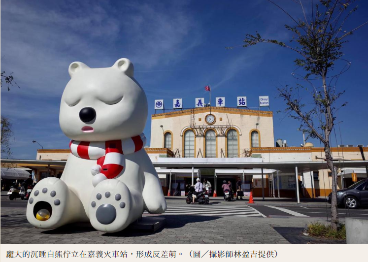 超療癒新打卡點!沉睡大熊現身嘉義車站!