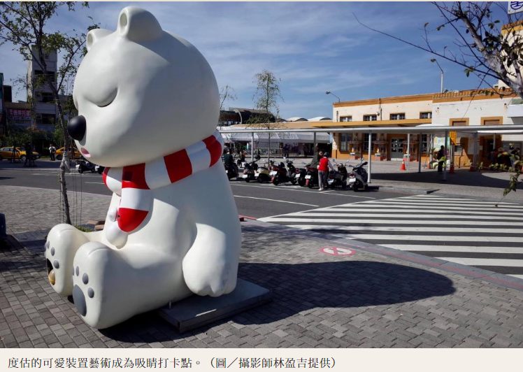 嘉義熱門打卡景點「沉睡森林」中的動物們都閉著眼沉睡著,可愛萌樣瞬間爆紅,嘉義市府為了迎接耶誕節和即將到來的農曆新年,特地將3公尺高的大白熊放置在嘉義火車站前,圍著紅白配色昏昏欲睡的白熊,讓路過的民眾都忍不住駐足合照,還笑稱:看他圍著圍巾覺得好熱!市府也預告接近農曆新年還會有除夕版的沉睡大熊展出,期間限定的童趣展覽,來嘉義旅遊的遊客們千萬別錯過了!