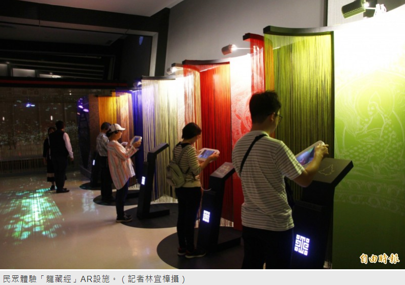 故宮南院本次展出的科技藝術展,有「璀璨光河」、「故宮啟航」、「羅浮宮驛站」、「美學世界」四大展區,從入口進入以動態投影打造的光影隧道「璀璨光河」,而「故宮啟航」則有「龍藏經:浮影幻化互動劇場」,以沉浸劇場演繹故宮藏傳佛教經典,而「自敘帖VR」以龍形幻化出懷素龍飛鳳舞的草書,「清明上河圖VR」則可讓觀賞者進入汴京內,親身與畫中人物互動,而超級名畫「早春圖」互動體驗則讓民眾有如飛鳥遨翔於山水畫之中。