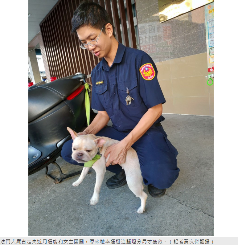 受理的員警突然想到上月21日,有一隻法鬥幼犬尾隨他闖進分局,在一樓警備隊辦公室徘徊奔竄,活潑可愛萌了一票員警,帶到附近店家及住戶詢問,並沒有走失小狗,便將他帶到寵物店掃瞄晶片,發現並未植入晶片。
