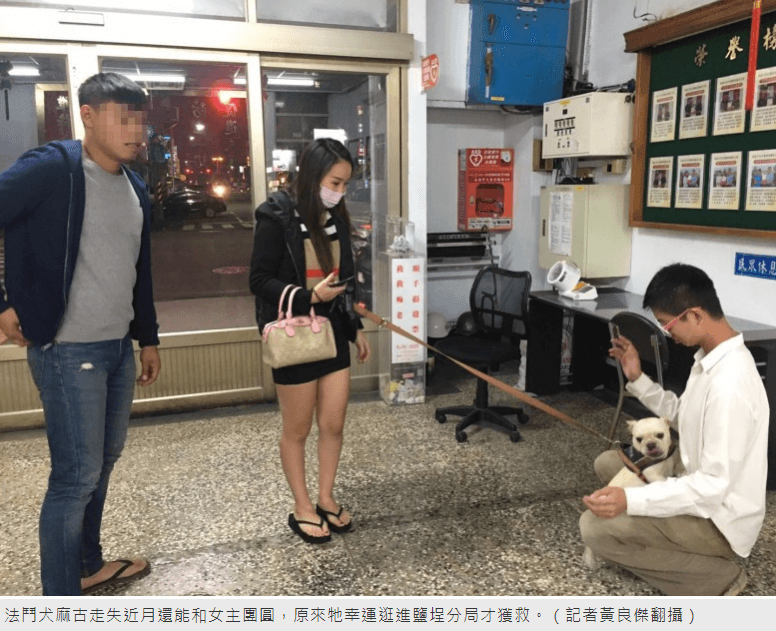 吳女因工作關係,將法鬥犬麻古留在高雄家中,上月中旬,吳母帶麻古到鹽埕區玩,小狗於建國四路、興華街口附近走失,因遍尋不著又怕女兒傷心,決定瞞著女兒,直到女兒最近回到高雄不見愛犬,才知1歲大的麻古走失快1個月,傷心欲絕哭了幾天,父母原本不抱希望,因不捨女兒難過,只好求助鹽埕分局尋找一線生機。