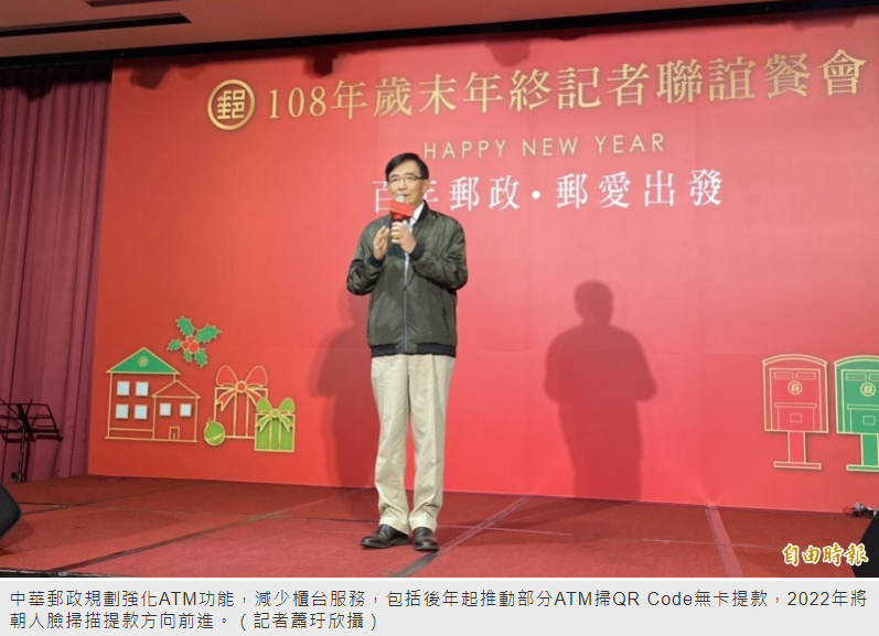 此外,有關ATM新增服務部分,中華郵政表示,預計明年底前,選擇比較大的郵局擇點試辦,2021年開始,配合ATM汰換作業,將新增680台可提供QR Code無卡提款功能的ATM;預計2022年推出掃臉就能提款的ATM功能。