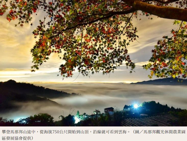 得票數相當接近的第二名、第三名步道,分別由「馬那邦山登山步道」與「加里山登山步道」拿下,馬拉邦山是大湖鄉第一高峰,每逢秋冬之際,高山的青楓、楓香轉色,讓旅人在攀登途中,能欣賞到滿山楓紅的美景搭配絕美雲海景色,登上山頂還可俯瞰大安溪、遠眺雪山等壯闊美景。