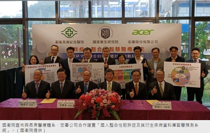 正因為關心國人肥胖症問題及衍生慢性代謝疾病等議題,國衛院今日宣布與長庚醫療體系、宏碁公司合作建置「國人整合性肥胖症及其衍生疾病資料庫智慧預測系統」。