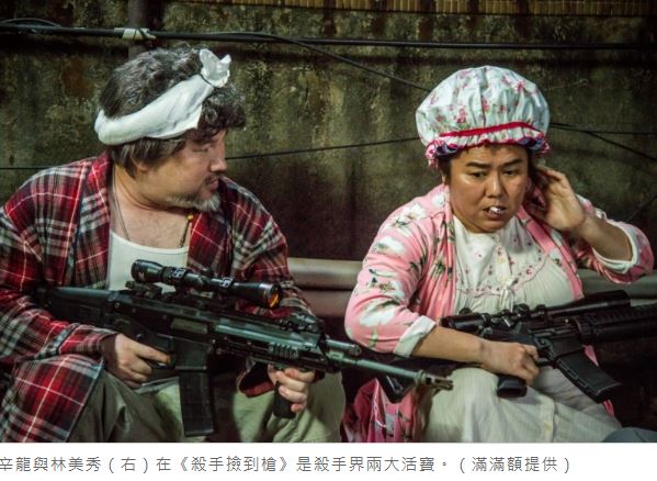 除了爆破的場面,劇組為求逼真也找來各式槍枝供演員拍攝,林美秀使用的狙擊槍,更是特別從香港申請入境的真槍,預估重量達6、7公斤,林美秀一直舉著槍奔跑、舉槍、射擊,讓她直呼手好酸痛,開玩笑說「可以用別的方法減肥嗎?」還趁著拍戲空擋叫快炒外送,坐在場邊跟辛龍大吃特吃補一下。而安心亞第一次拿起「特製pink手槍」還覺得很漂亮新奇,但一試按板機發出的爆炸聲,讓安心亞嚇到大叫,多試幾次才適應。《殺手撿到槍》23日在台上映。