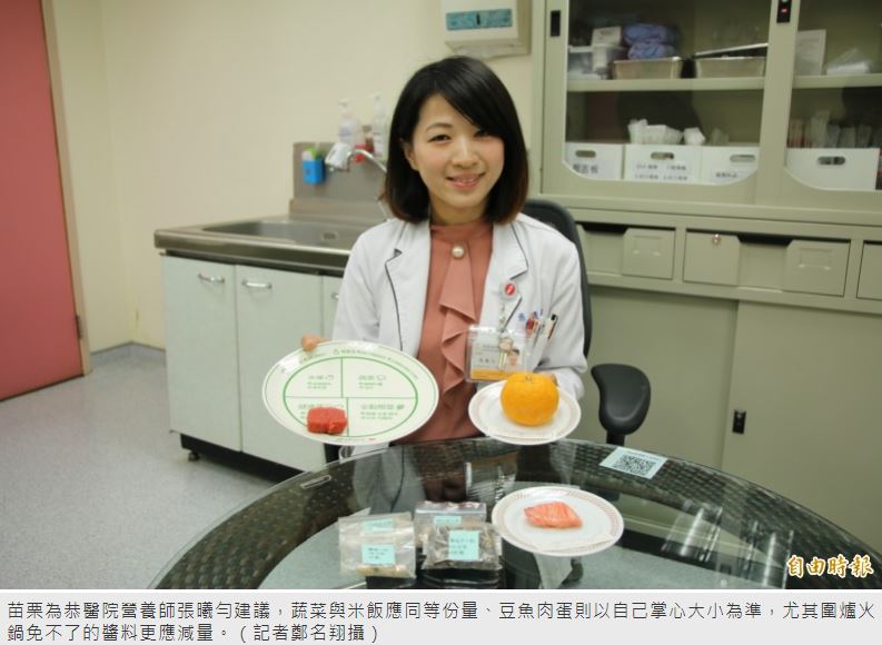 年節將至,美食當前令人難以抗拒,但又擔心年後身材走樣、影響健康,苗栗為恭醫院營養師張曦勻建議,豆魚肉蛋以自己掌心大小為準、而蔬菜與米飯應同等份量,尤其圍爐火鍋免不了的醬料更應減量,此外,多以當季水果取代糖果餅乾等,汽水飲料則可改為花茶、水果茶等,按此飲食原則,美食吃多也不怕發胖。