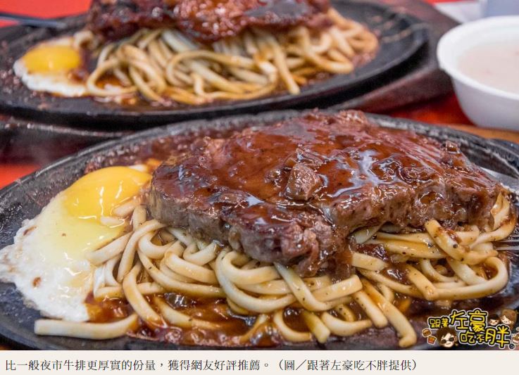 實際上,牛小弟牛排是許多當地人的夜市愛店,最低價位的豬排只要90元,厚實又具份量的牛排、雞腿排100~130元就能吃飽足,每到用餐時段總是人潮滿滿,部落客跟著左豪吃不胖也點評,厚片牛排的厚度比一般牛排還要多2倍、雞腿排吃起來非常軟嫩富有肉汁,配上台式牛排必備的鐵板麵、荷包蛋,以及冰紅茶、玉米濃湯無限續,親民價格與口味廣受民眾喜愛。