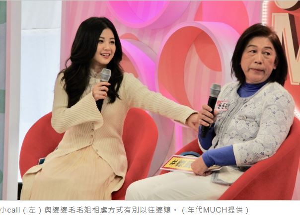 年代MUCH綜藝《聽媽媽的話》邀請到小call與她婆婆「毛毛姐」,揭露自家超奇葩「婆媳問題」,原來是小call翻轉了媳婦乖乖聽話的常規,不僅會對婆婆訓,甚至反過來訂定嚴格家法管婆婆,顛覆傳統的相處方式,讓現場婆媳專家也呼籲小call「適可而止」。婆婆「毛毛姐」坦言小call婚後入住,嚴格的規定讓她壓力很大,主持人小禎忍不住問會不會想要小call搬出去,毛毛姐則笑說:「我不會想要他們搬出去,我想跟兒子一起住。」