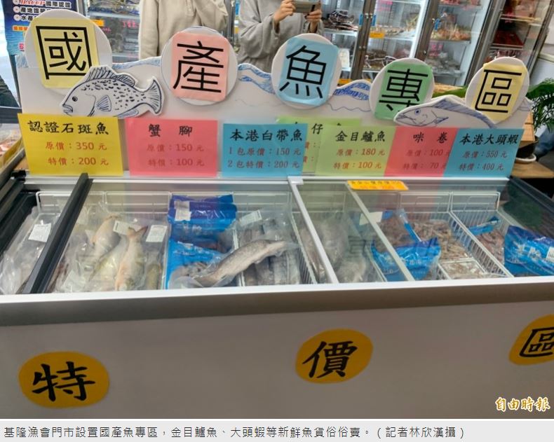 陳文欽表示,漁會門市還設置「國產魚專區」,小卷、黃金蟹腳、白帶魚、金目鱸魚、大頭蝦等新鮮魚貨俗俗賣,也有安全履歷認證,讓大家買的放心,吃的安心,價格優惠。基隆區漁會門市地址:基隆市中正區環港街5號1樓;營業時間:週一至週日,每日上午8點到下午5點。