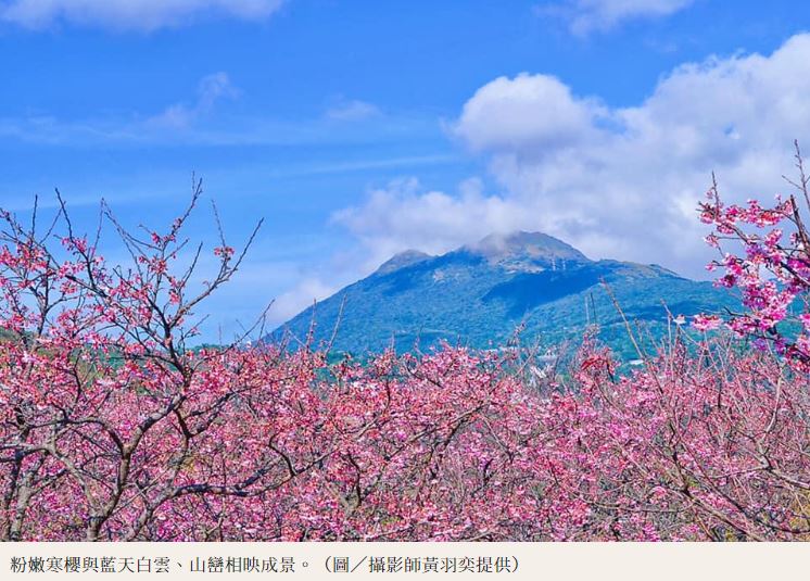 平菁街42巷享有「最浪漫櫻花步道」美稱,是北市最早盛開的賞櫻勝地,目前花況達7成左右,在藍天白雲以及山巒的映襯下,美不勝收,農曆年前可一睹粉嫩花海滿炸的夢幻景象,民眾搭公車就能輕鬆賞花!北台灣櫻花季年年幾乎都由「陽明山平菁街」拔得頭籌,今年也不例外!