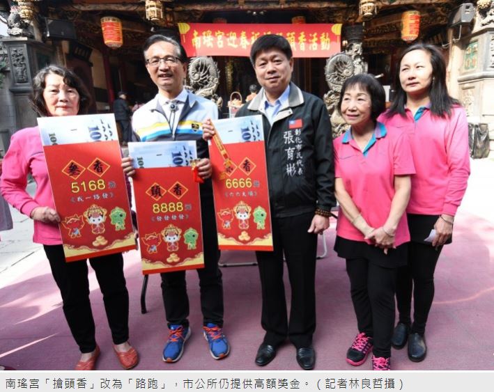 南瑤宮今年將更改規則,讓有意參賽民眾事先報名路跑。林世賢表示,路跑的起跑點和終點都設在南瑤宮廟門口,由南瑤路北上直行抵達旭光路口折返,全程約1.5公里,本次有區分男子組及女子組,各組前三名都有獎金。
