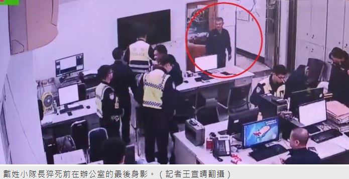 晚間10時,同事們準備簽出時,見戴姓小隊長並未簽出,前往寢室提醒,不料卻發現戴姓小隊長倒在寢室床上失去生命跡象,趕緊駕駛巡邏車將他送往林口長庚醫院急救,但搶救2小時,戴員仍不治身亡。