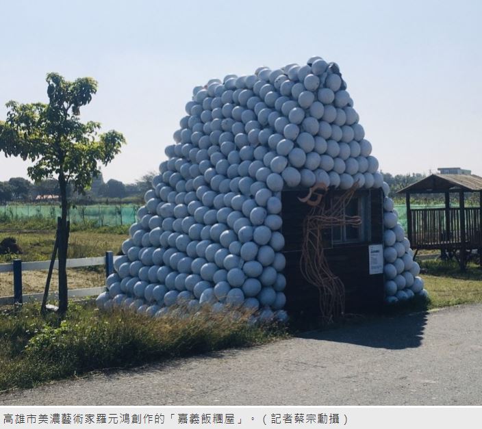 其中由來自高雄市美濃藝術家羅元鴻創作的「嘉義飯糰屋」,募集二手安全帽做為作品元素時,意外接收到熱血台灣人支援「香港反送中」被香港海關退回的安全帽,還沒有完工就製造話題,經本報獨家報導後,香港媒體還派人跨海前來專訪。
