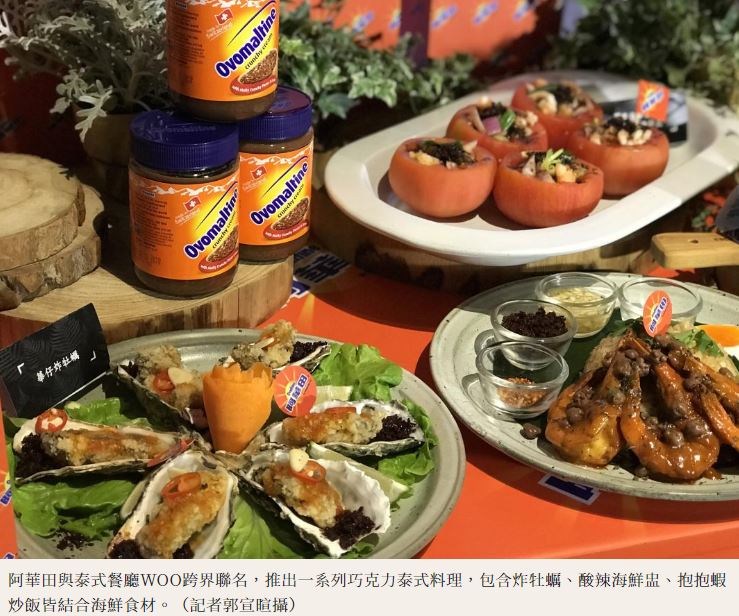 阿華田濃郁可可深受大小朋友喜愛,今年冬天不只能享受暖呼呼的巧克力飲,阿華田更首度與泰式餐廳Woo Taiwan 合作,以巧克力麥芽、脆酷力抹醬入菜,巧克力與數10道酸辣泰菜撞出新風味,超衝擊的創意菜色,包含又甜又鹹的牡蠣、打拋蝦炒飯以及火山熔岩冰,顛覆你對阿華田的印象!
