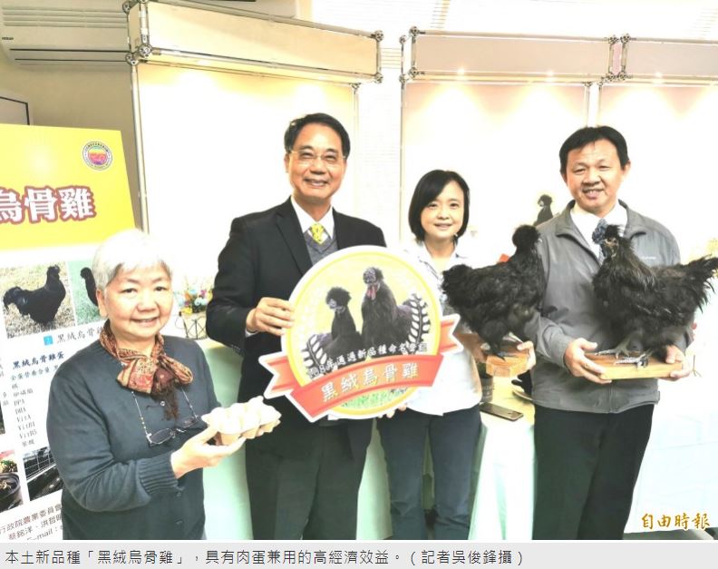 行政院農委會畜產試驗所歷時12年,育成本土新品種「黑絨烏骨雞」,體型雖小,卻有如高帽子的纓頭,以及玫瑰冠等特徵,重要的是,肉質細緻,且產蛋數多出台灣現有烏骨雞超過1倍,機能更佳,市場商機潛力大,今天成果發表,引人矚目。