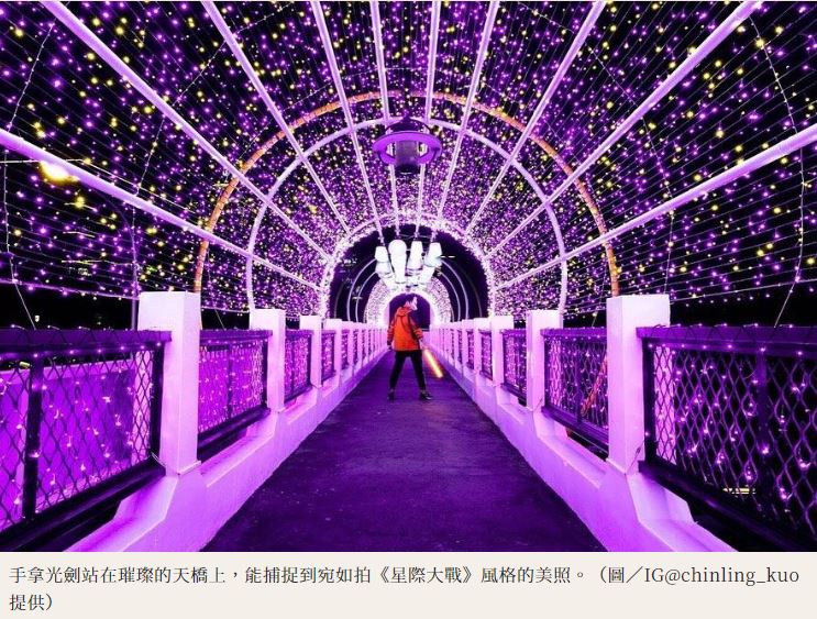 2020台灣燈會在台中,萌Q的戽斗動物星球、熱帶水果鳥搶先成為打卡焦點,農曆春節將至,為了打造全程燈會的盛況,台中市政府都發局籌劃「一軸四橋」點燈活動,將台中一座座人氣天橋變身夜晚最閃耀的星空隧道,更有IG網友拿起光劍KUSO模擬電影《星際大戰》場景,越夜越熱鬧!