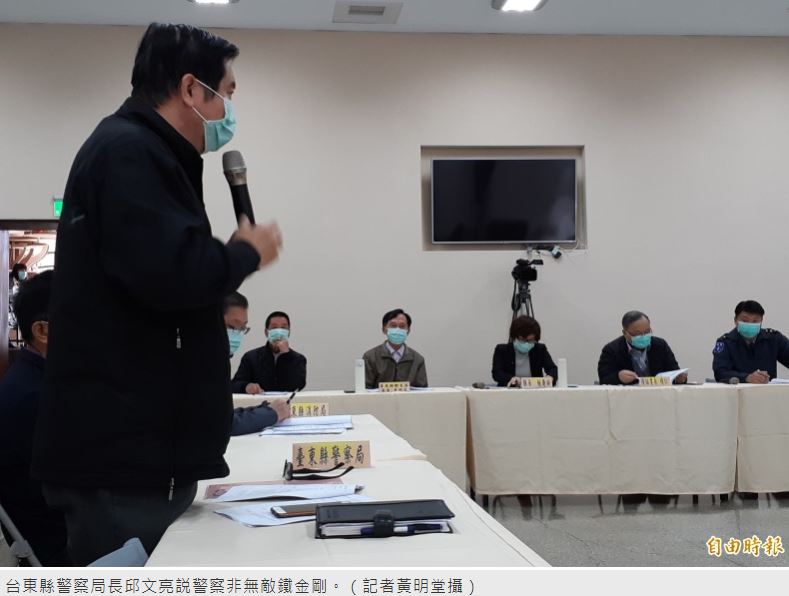衛生局長黃明恩原表示可以考量、酌量配發,但警察局長邱文亮指出,警察在防疫中不能置身事外,包括訪查個案等接受的任務很多,加上跟民眾接觸頻繁,因此有向警政署爭取口罩,但仍不夠,既然庫存還有10多萬,應盡量給警察,讓站在第一線的警察心安。
